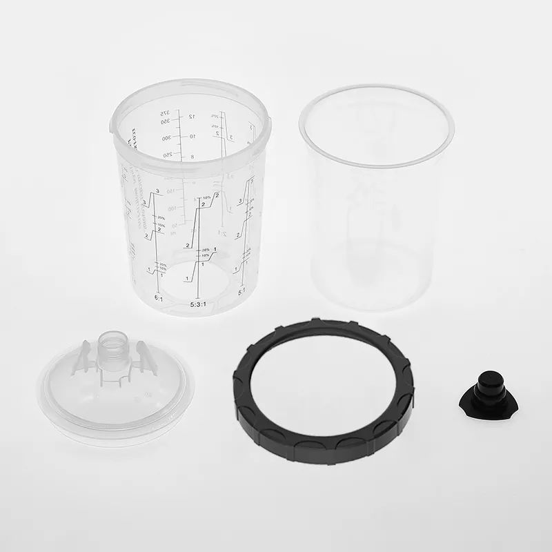 400ML Disposable Paint Cup System 1.0 lid color can be customized, the light weight lid integrates a filter that can remove impurities before spraying, ensuring the quality of the spray.